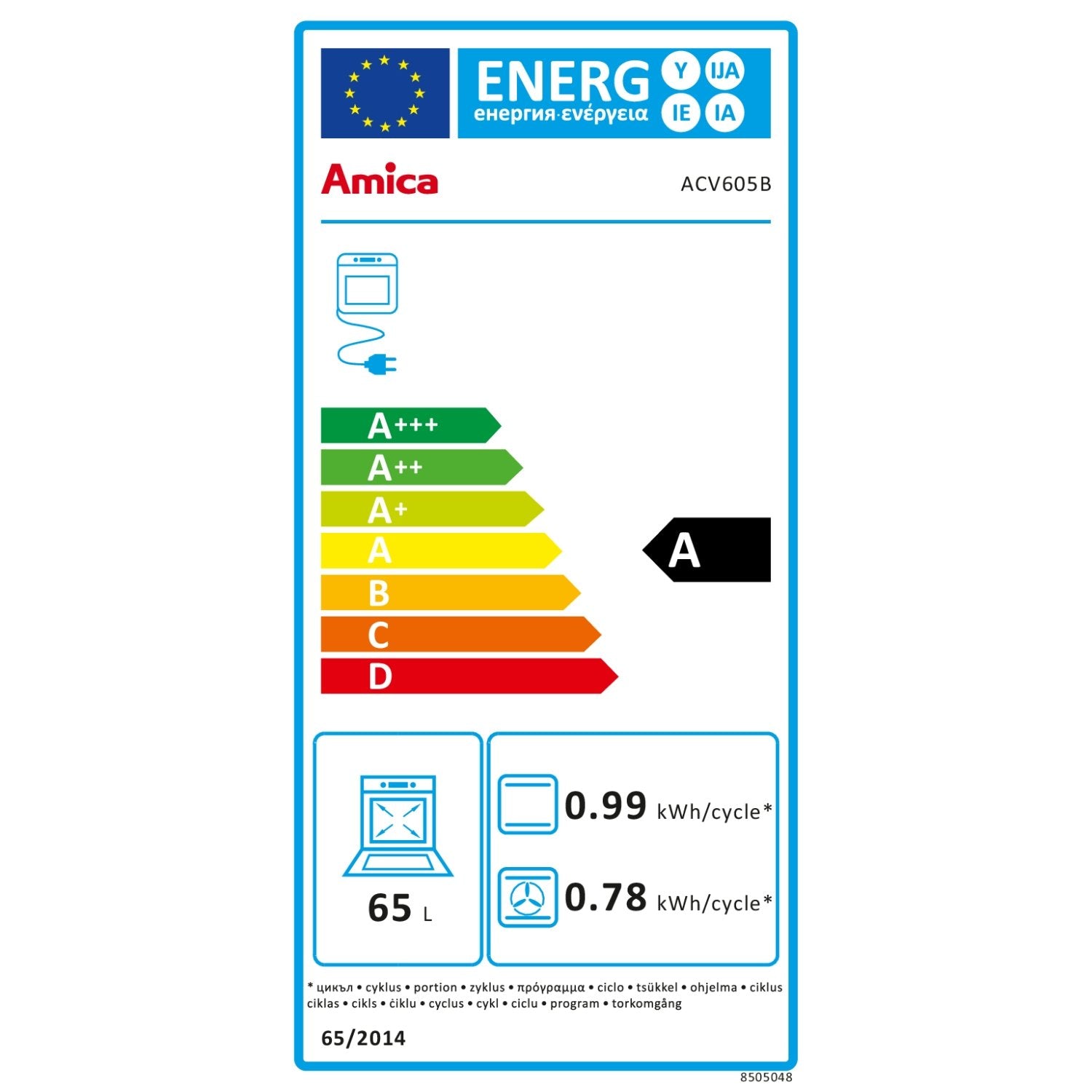 Son revêtement en verre céramique Schott Ceran et sa porte toute en verre lui confère un design moderne, cette cuisinière Amica ACV603B s’intégrera facilement dans toutes les cuisines équipées.