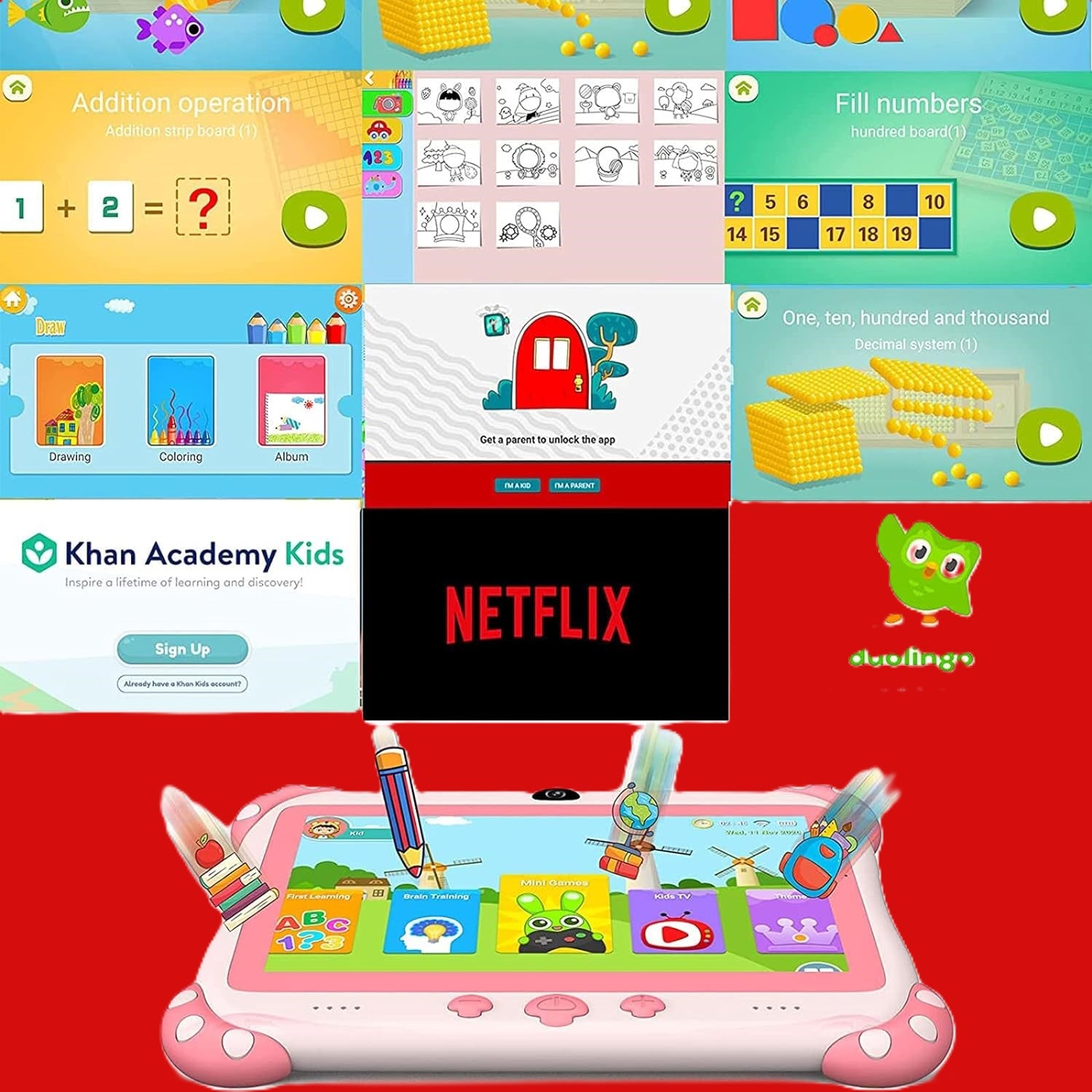 - Tablettes pour enfants puissantes avec une gamme complète de fonctions : tablette Ascrecem pour enfants est livrée avec de nombreuses applications éducatives préinstallées pour apprendre et jouer aux enfants, comme Youtube, de nombreux jeux de puzzle intéressants, livres, musique, films et art d’apprentissage, vous pouvez également télécharger Facebook, souris Abc, Netflix, enfants Youtube depuis Google Playstore. Tablette Nourrissons Garder Vos Enfants À Fusionner Dans L’océan De La Connaissance Qui Donne La Sécurité Des Parents.