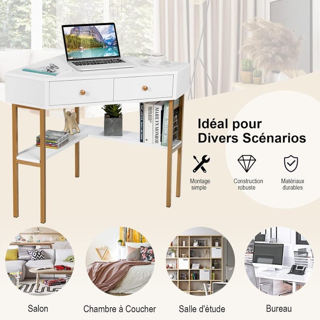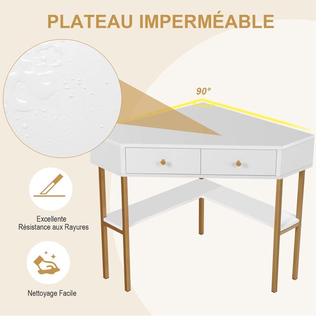 - Économie d’espace : Conçu pour s’adapter parfaitement aux coins de votre maison, ce bureau maximise l’utilisation de l’espace avec un agencement réfléchi.