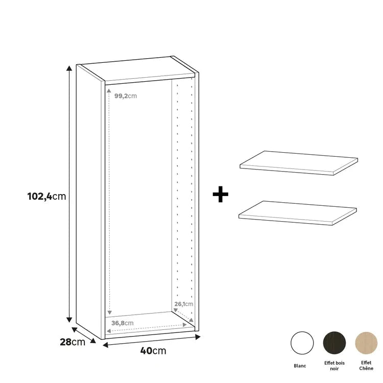 Caisson + 2 tablettes SPACEO Evo’M Blanc H.102,4 X L.40 P.28 cm