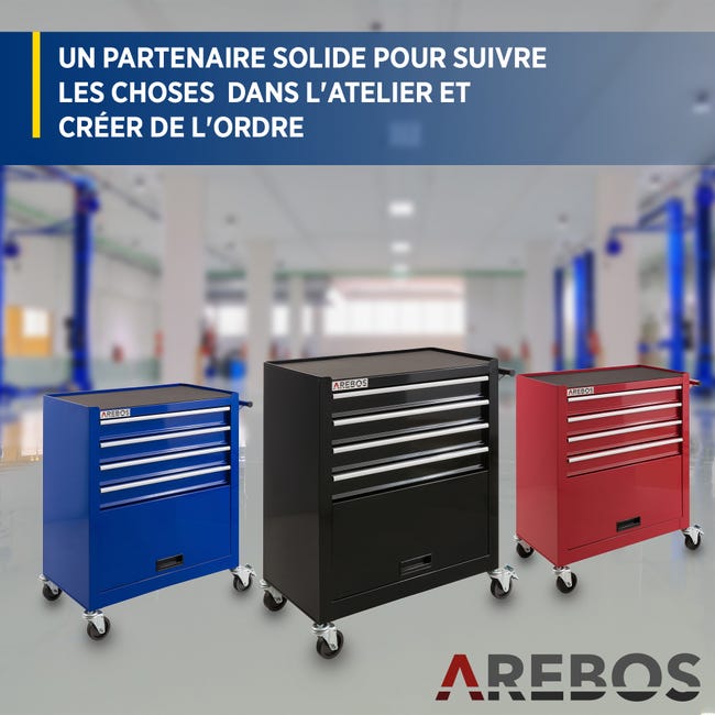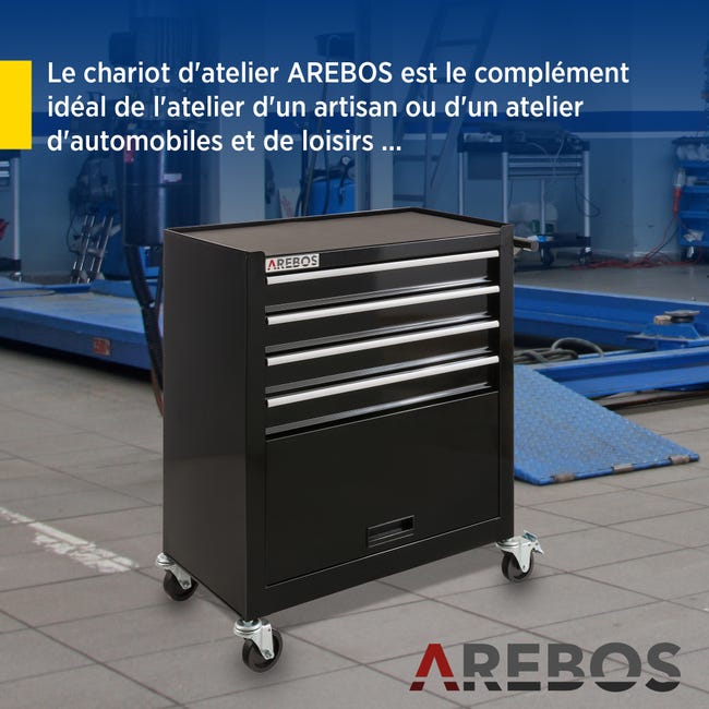 Investissez dans le Chariot d’Atelier AREBOS et transformez votre façon de travailler. Dites adieu au désordre et profitez d’un espace de travail parfaitement organisé!