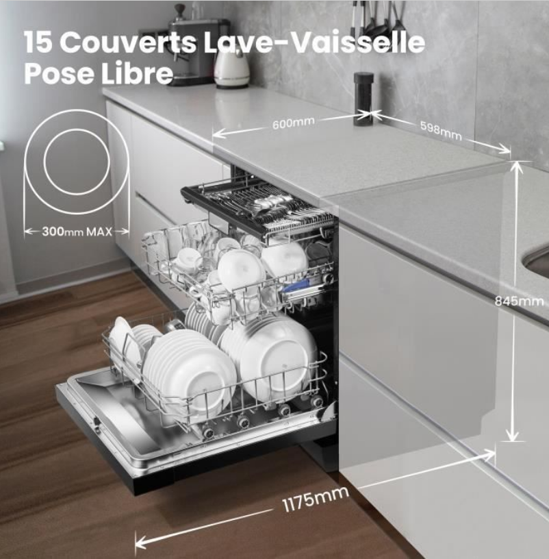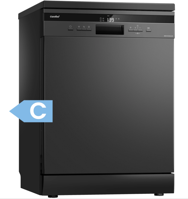 Comfee Lave-vaisselle pose libre FD1535E-DX L60cm 42db avec 15 couverts, 8 programmes, Affichage LED Dark Inox-Énergétique C