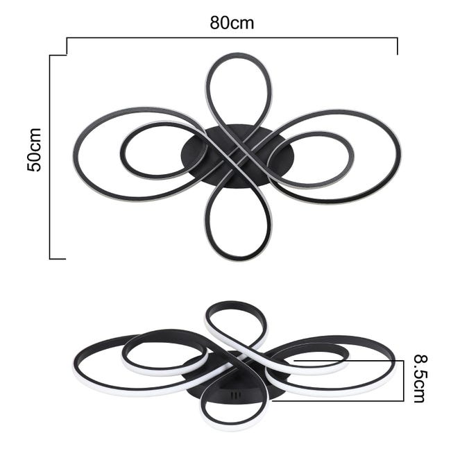 NETTLIFE Plafonnier LED Noir Intensité Variable 80 cm Salon 78W Chambre Moderne avec Télécommande Design Idéal pour Salle à Manger Bureau Cuisine