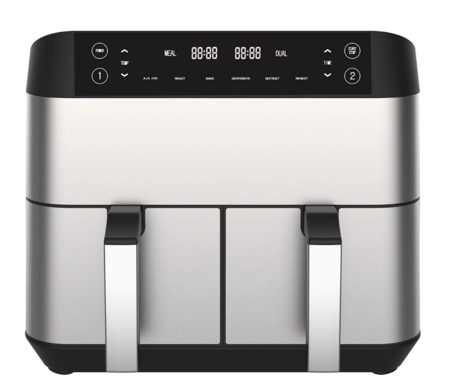 Niceey Airfryer XXL Friteuse Air – 2460W – 2x4L Double Panier – Récipient Antiadhésif – 8L – Argent
