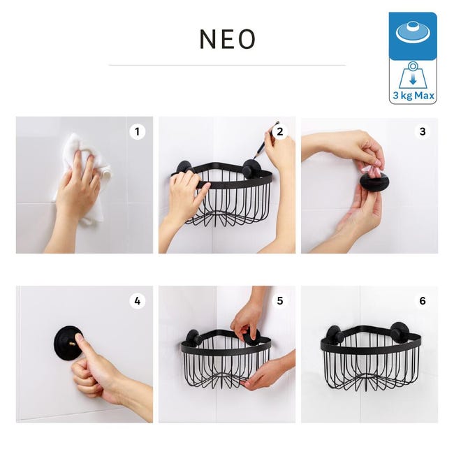 Idéal pour les petites salles de bains ou les douches, ce panier permet de garder vos essentiels à portée de main tout en optimisant l’espace disponible. Parfait pour ranger vos gels douche, shampoings et autres accessoires de bain.