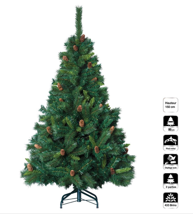 Retrouvez toute la magie de Noël avec ce Sapin de Noël Artificiel Royal Majestic ! Ses nombreuses aiguilles et ses nuances de vert lui donnent un aspect très réel, les inconvénients en moins. Ce bel arbre de Noël est fabriqué en PVC résistant, avec un pied en métal qui lui assure une bonne stabilité au sol. Plusieurs hauteurs disponibles : L 86 x l 86 x H 150 cm // 3,8 kg Un sapin Fééric Christmas.Couleur : VertDécorations intégrées : OuiDécorations lumineuses : NonDimensions (L x l x H) : 86 x 86 x 150 cmFlocage blanc : NonHauteur : 150 cmMarque : FEERIC CHRISTMASMatière(s) : Métal et PVCPoids : 3,8 kgUtilisation : Intérieur