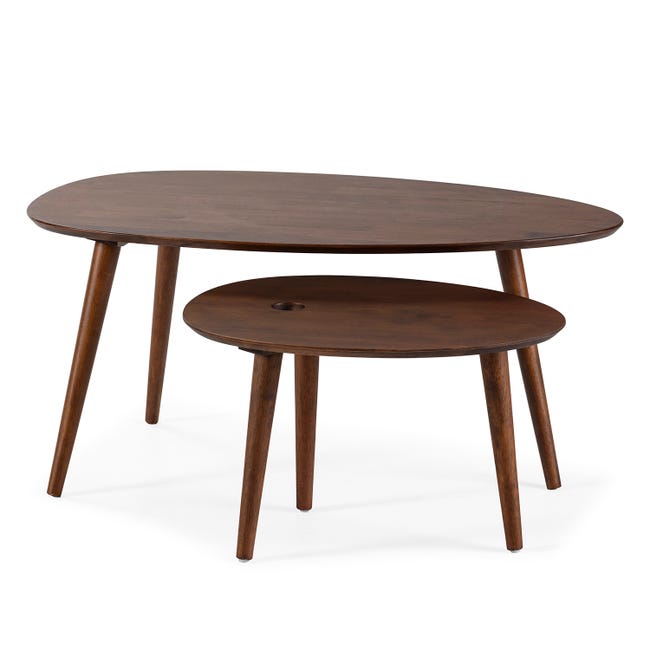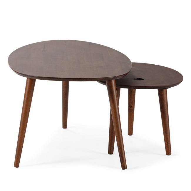 Set de 2 tables basses Eclipse couleur noyer, bois massif