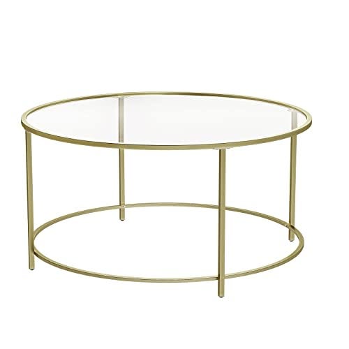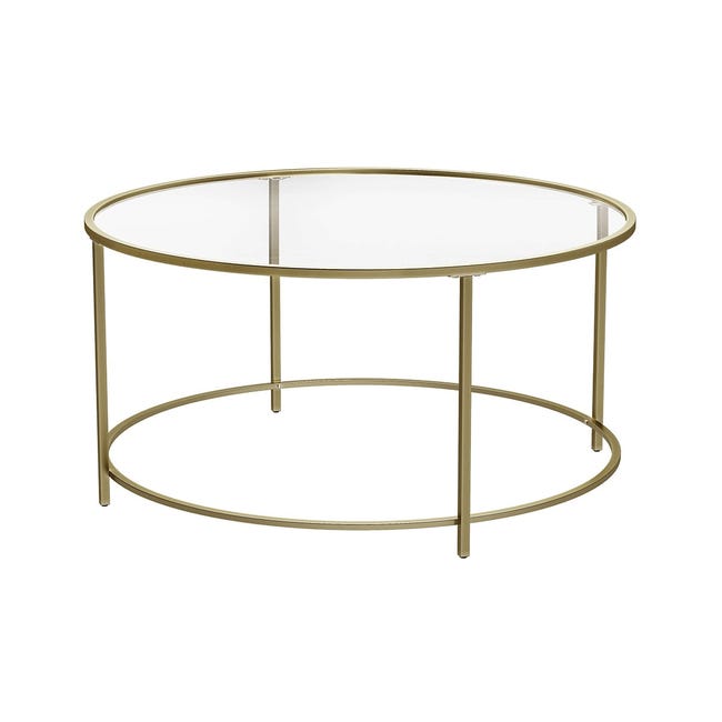 Table Basse Salon en Verre, Cadre en AER Ronde Doré